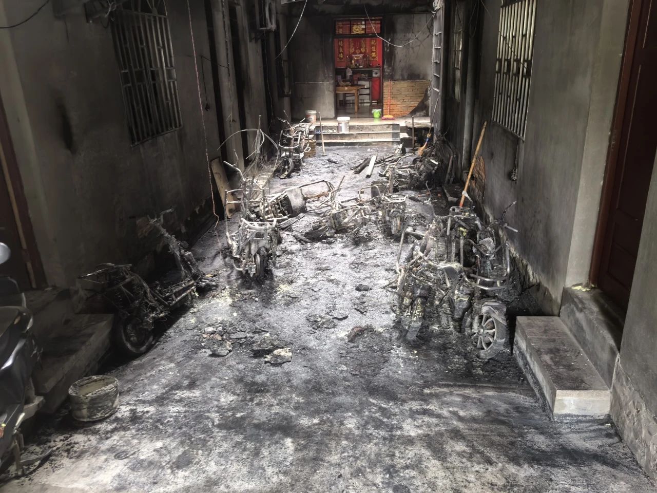 經調查,該自建房的天井處停放多輛電動自行車,且普遍存在“飛線”充電等違規行為,房東未及時制止違規行為,且未設置任何消防設施。