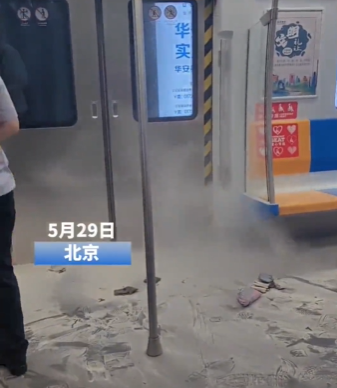 2023年5月底,北京地鐵7號線上,一名乘客挎包內的充電寶突然發生爆燃。