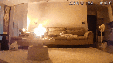 沙發突然出現大量火花,僅3秒呈爆炸性燃燒狀態,火花點燃沙發后,火勢迅速擴大蔓延。