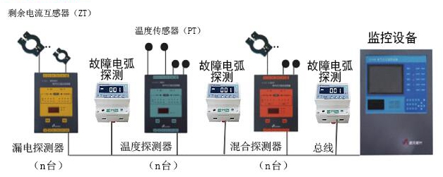 DT-200/DH型故障電弧探測器能夠監(jiān)測線路中串、并聯(lián)故障電弧,發(fā)出現(xiàn)場聲光報(bào)警,同時(shí)將監(jiān)測數(shù)據(jù)通過RS485總線通知電氣火災(zāi)監(jiān)控設(shè)備。如果監(jiān)控現(xiàn)場沒有電氣火災(zāi)監(jiān)控設(shè)備,故障電弧探測器也可以獨(dú)立工作,同時(shí)也可以配接智能數(shù)據(jù)傳輸單元,通過無線傳輸模式將數(shù)據(jù)共享于智能管控云平臺大數(shù)據(jù)終端,同時(shí)可推送到手機(jī)微信數(shù)據(jù)業(yè)務(wù)客戶端,以便于管理人員在第一時(shí)間得到及時(shí)可靠的故障電弧預(yù)警信息。